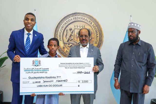 Madaxweynaha Soomaaliya Xasan Sheekh Maxamuud oo soo xiray Tartanka Quraanka Kariimka ah ee Bisha Barakaysan ee Ramadaan ayaa abaal marinno lacageed guddoonsiiyey Ardeyda kaalimaha hore ka galay tartanka sannadkan.